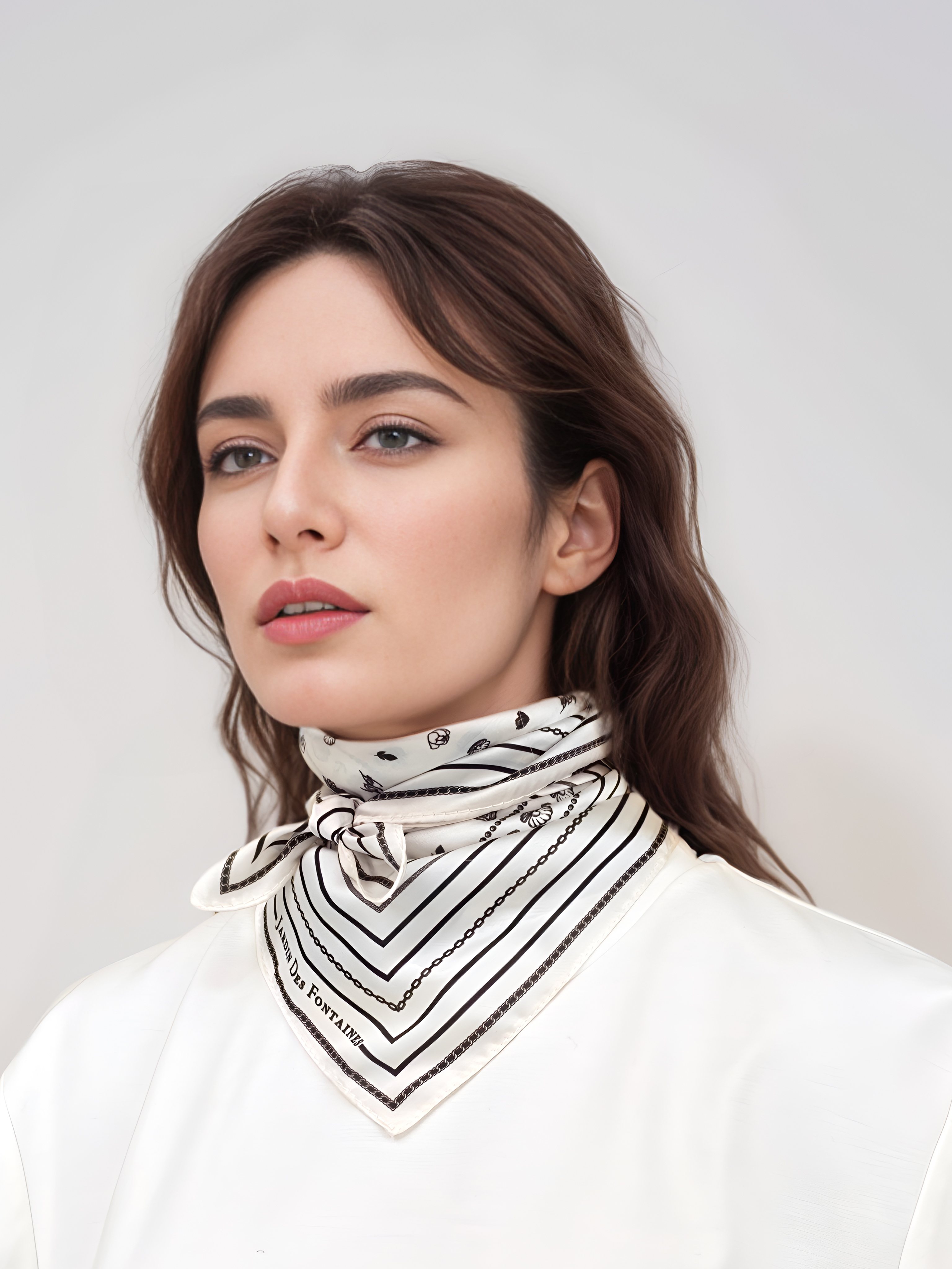JARDIN DES FONTAINES- 左岸花園黑白柔滑絲巾 (60厘米)- JDF-CAF904A-60