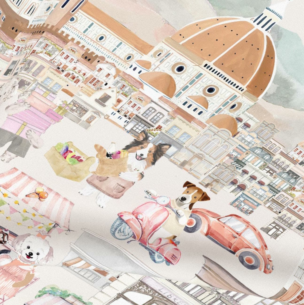 JARDIN DES FONTAINES- 我的汪佛羅倫薩與狗狗柔滑絲巾 (60厘米)- JDF-OMD904A-60
