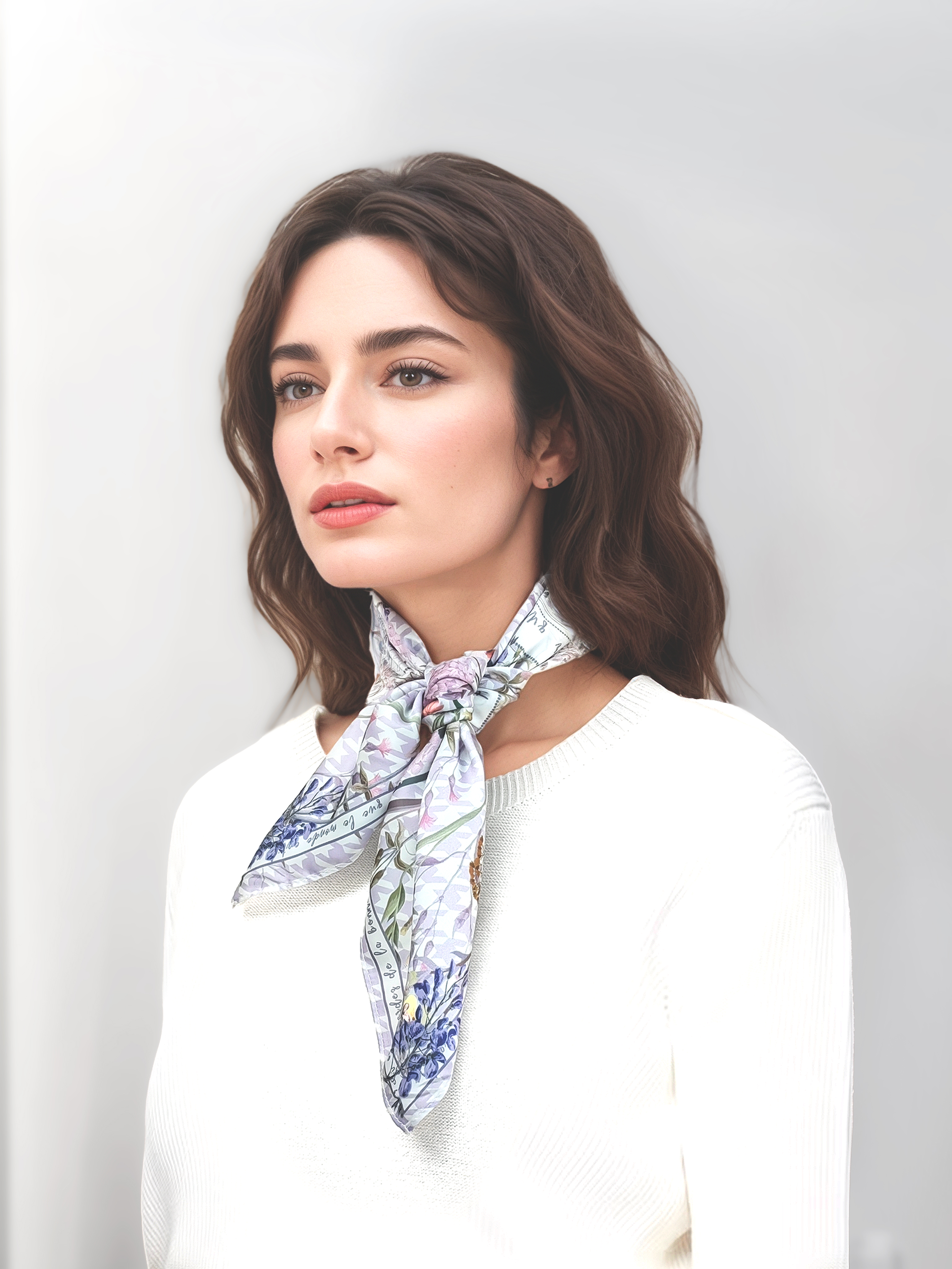 JARDIN DES FONTAINES- 紫色秘密花園千鳥格柔滑絲巾 (60厘米)- JDF-SVG904A-60