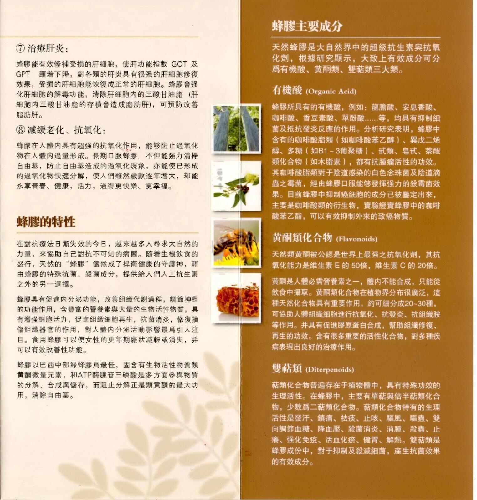 主要成份: 樹脂、臘質、香精油、花粉