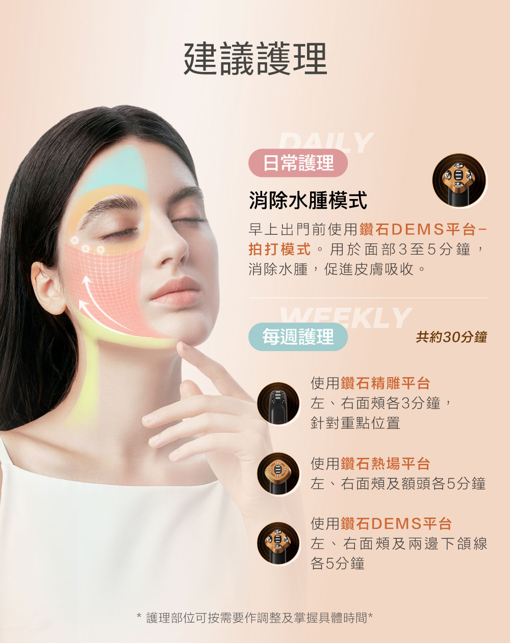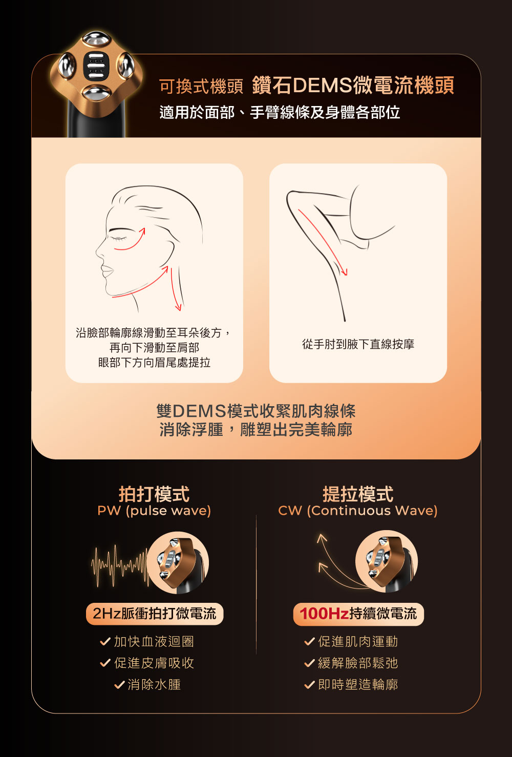 ❸ 微電流(DEMS) 可以緊致線條,塑造輪廓。
