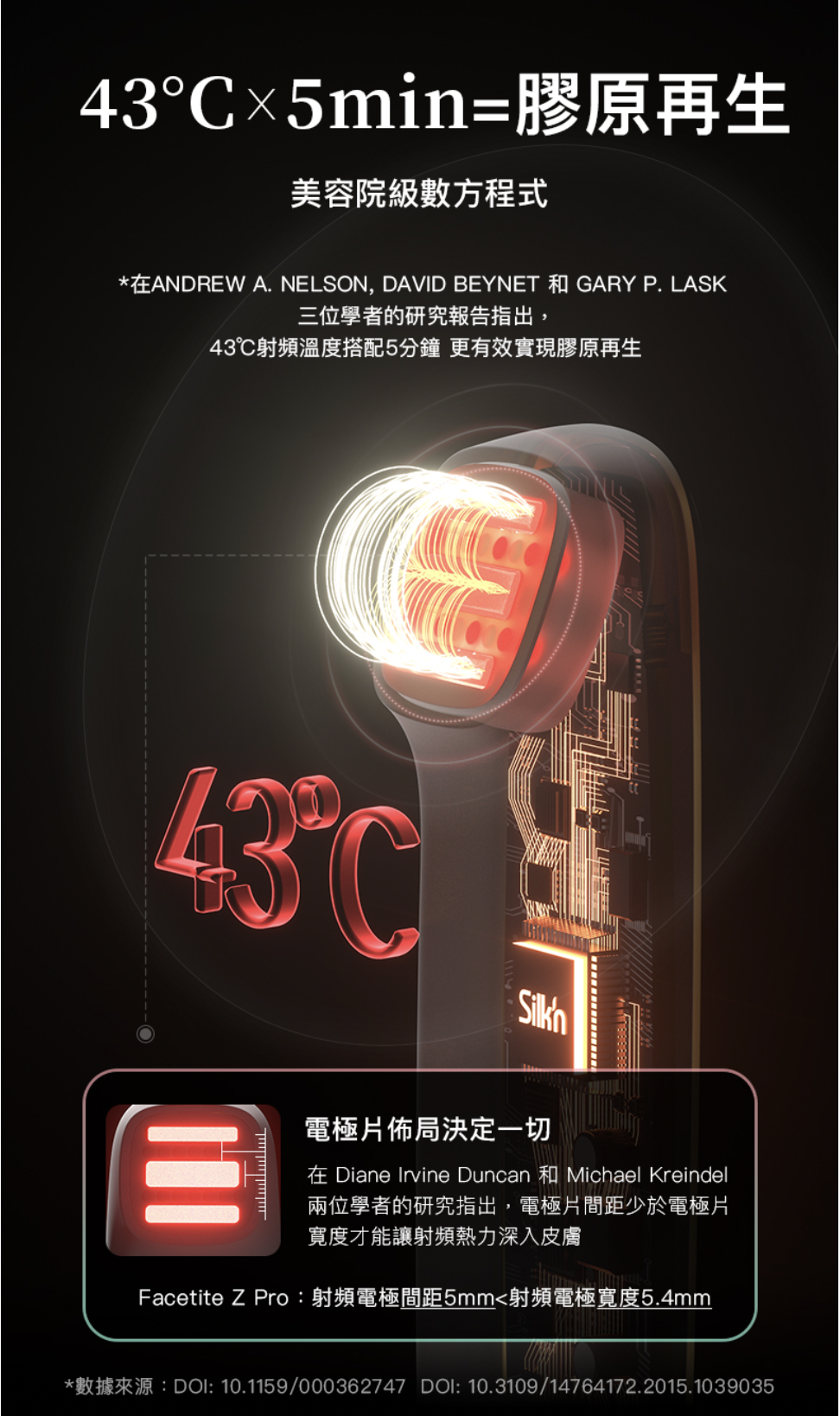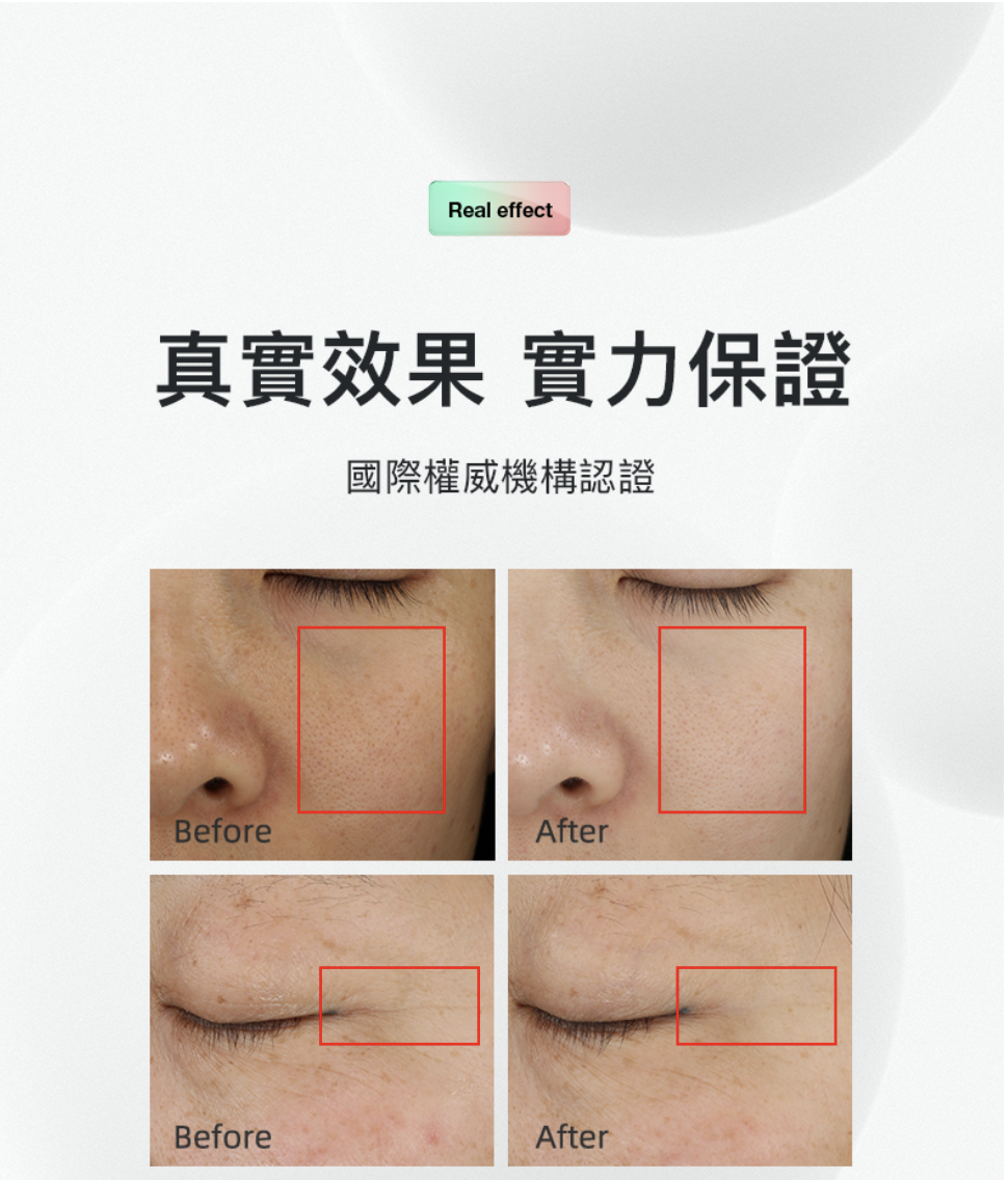 -經權威實驗室Intertek實測︰2分鐘速達43°C膠原沸點、5分鐘重建膠原、2星期重啟年輕肌