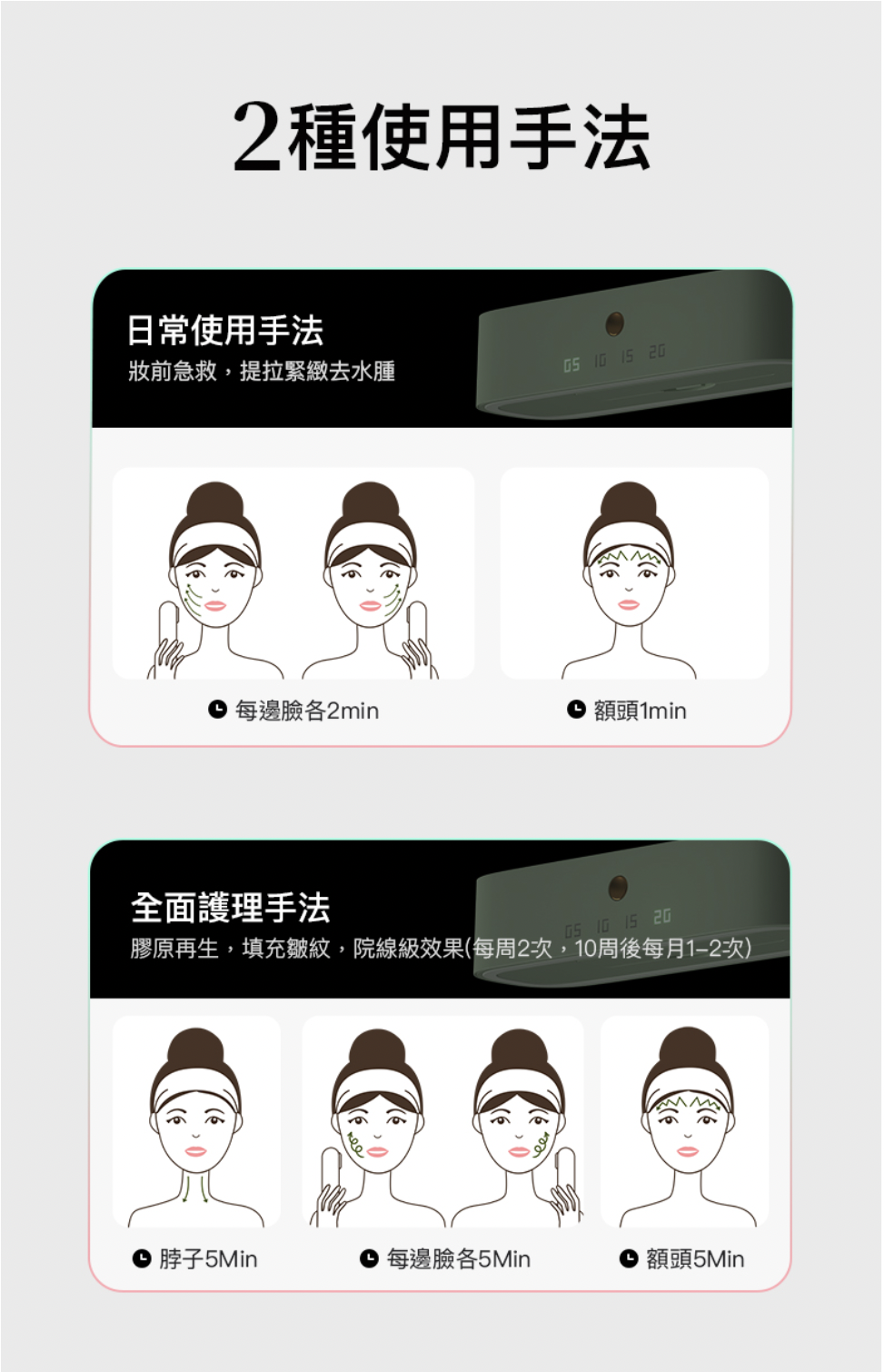 -新增四種功能模式︰喚膚、拉提、緊緻、燃動膠原
