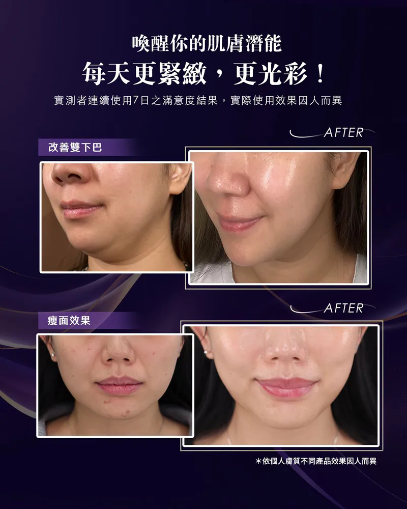 特別是在下顎線部位,使用後能快速提拉,改善水腫情況!