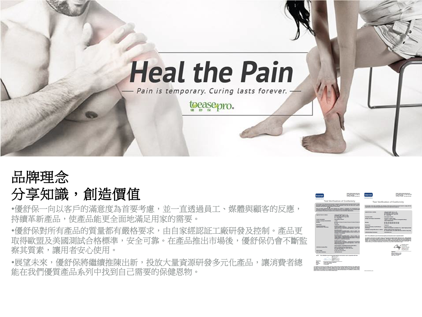Toeasepro 產品以GRIN-IMPLA技術將稀土分子矽入產品,能釋放1700至2300ion/cc高密度負離子能量,有效擴張微血管,活化細胞改善新陳代謝,更可中和身體上的正離子和酸鹼度,以降解乳酸和抗氧化,達至增强人體的自然復元能力,做就健康的身體。