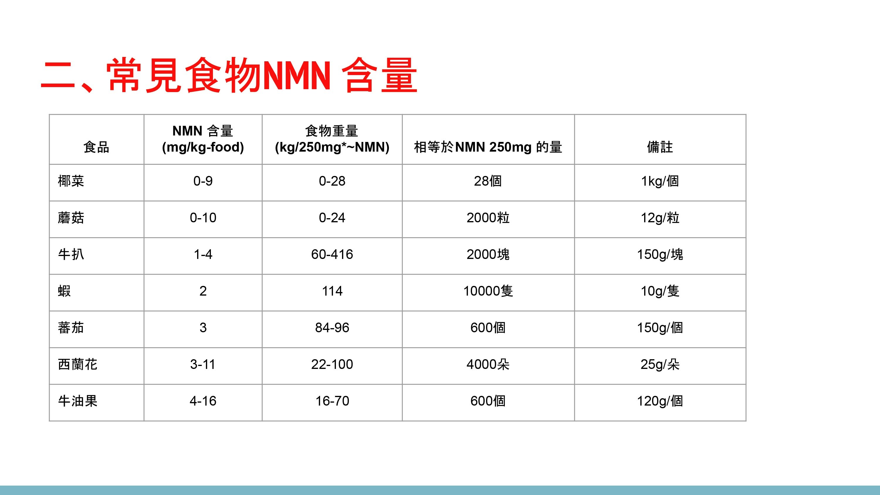 NMN的有效劑量為250毫克,一天最大劑量為1,000毫克, 或可遵照專業人士的意見